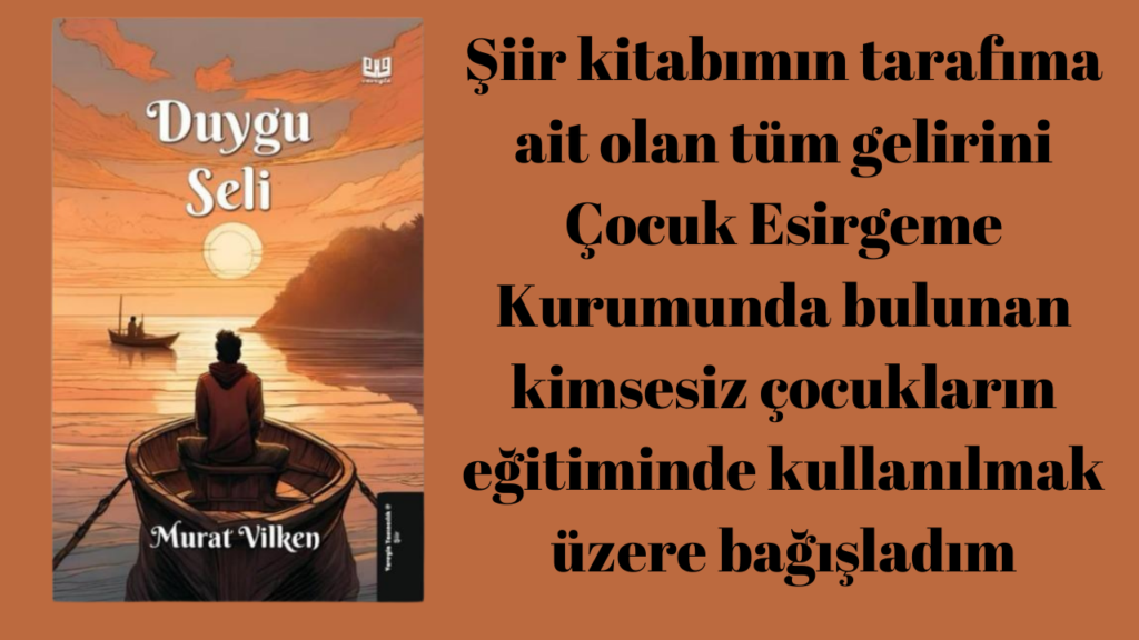 Murat VİLKEN, “Duygu Seli” kitabının satış gelirini, çocuk esirgeme kurumlarında kalan kimsesiz çocukların eğitimine bağışlayacağını duyurdu. Bu anlamlı adımla, dezavantajlı çocukların geleceğine katkıda bulunmayı hedefleyen VİLKEN, toplumsal dayanışmaya da örnek oluyor.