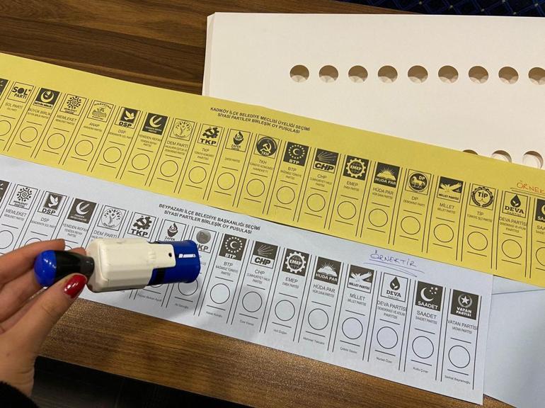 Büyükşehir belediye başkanlığı için oy pusulası beyaz, il genel meclisi üyelikleri için oy pusulası turuncu, belediye başkanlığı için oy pusulası mavi, belediye meclisi üyeliği için oy pusulası ise sarı renkli olacak. Seçmenler, tüm oy pusulalarını tek zarfa koyacak. İstanbul Büyükşehir Belediye Başkanlığı için olan beyaz pusulanın boyu yaklaşık 1 metre olacak.
